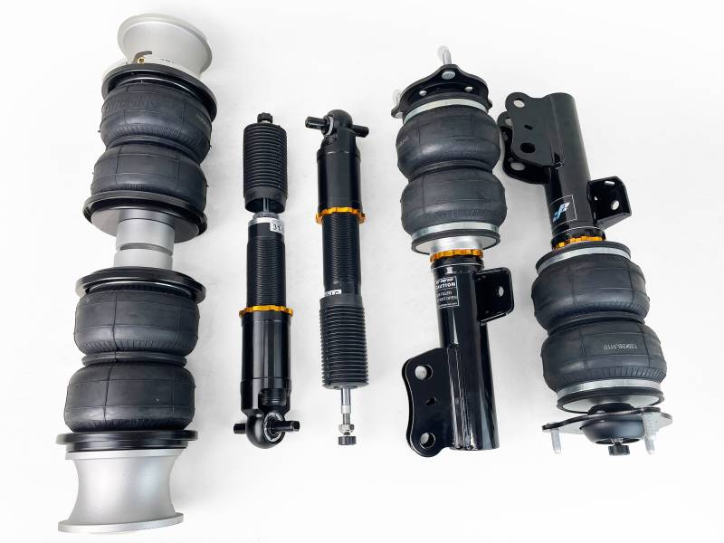 AirForce Suspension USA! ISO9001 CERTIFIED / TUV CERTIFIED for Europe, Canada and UAE. NEW LOWER PRICES! For over 25 years, AirForce Suspension has been bringing to the world top quality air struts. Airforce steps you up into the 21st century with the latest technology in air ride suspension systems straight from Japan!. No longer a general universal style bag on a factory strut, AirForce utilizes custom damped and built coilover bodies with air bag to provide you the best of all worlds! No need to sacrifice ride to be low. The AirForce air ride struts provide you with a 36 position dampener for the best ride, combined with the static adjustment from the fully threaded bodies lower adjustable spindle , top plates with rubber pillow ball mount for self adjusting camber (1-2 degrees average) are also standard! and then the dynamic motion of the air bag. Can you say SLAMMED! Add optional fully adjustable camber plates, where applicable, for the ultimate stance. AirForce Suspension combines these high tech struts/bags with your choice of Air Lift control systems from mild to wild to suit your needs and budget. Choose from 4 Way Independent Manual Paddles, The NEW! Airlift ALP4 with LED lighting and awesome touch screen hand controller also features bluetooth connection, or the tried and true Airlift 3P pressure based w/bluetooth / 3H height sensor based w/bluetooth . All kits are complete with everything you need to bolt right in and get LOW.(Some kits may require the welding of spring cups) GET YOUR LOW LOW WITH AIRFORCE SUSPENSION USA!