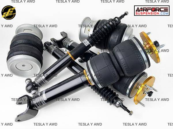 AirForce Suspension USA! THE ONLY AIR STRUT WITH 5 YEAR DAMPER OIL LEAK WARRANTY AND TWO YEAR AIR BAG DEFECT, CRIMP RING FAILURE, TOP HAT DEFECT WARRANTY! DIRECT BOLT IN TESLA Y AWD STRUTS, NO MODS, NO DRILLING, NO CUTTING! AirForce Suspension USA! is ISO9001 CERTIFIED / TUV CERTIFIED for Europe, Canada and UAE. NEW LOWER PRICES! AirForce Suspension steps you up into the 21st century with the latest technology in air ride suspension systems straight from Japan!. No longer a general universal style bag on a factory strut, AirForce utilizes custom damped and built coilover bodies with air bag to provide you the best of all worlds! No need to sacrifice ride to be low. The AirForce air ride struts provide you with a 36 position dampener for the best ride, combined with the static adjustment from the fully threaded bodies lower adjustable spindle , top plates with rubber pillow ball mount for self adjusting camber (1-2 degrees average) are also standard! and then the dynamic motion of the air bag. Can you say SLAMMED! Add optional fully adjustable camber plates, where applicable, for the ultimate stance. AirForce Suspension USA combines these high tech struts/bags with your choice of Air Lift control systems from mild to wild to suit your needs and budget. Choose from Manual Paddles, The new entry level digital bluetooth controlled 3S, the tried and true V2 Autopilot, or the top selling 3P 3H . ( SEE VIDS BELOW) All kits are complete with everything you need to bolt right in and get LOW.(Some kits may require the welding of spring cups) GET YOUR LOW LOW WITH AIRFORCE SUSPENSION USA!